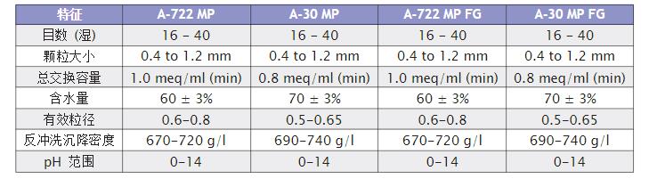 科海思脫色工藝使用樹脂質(zhì)量參數(shù)